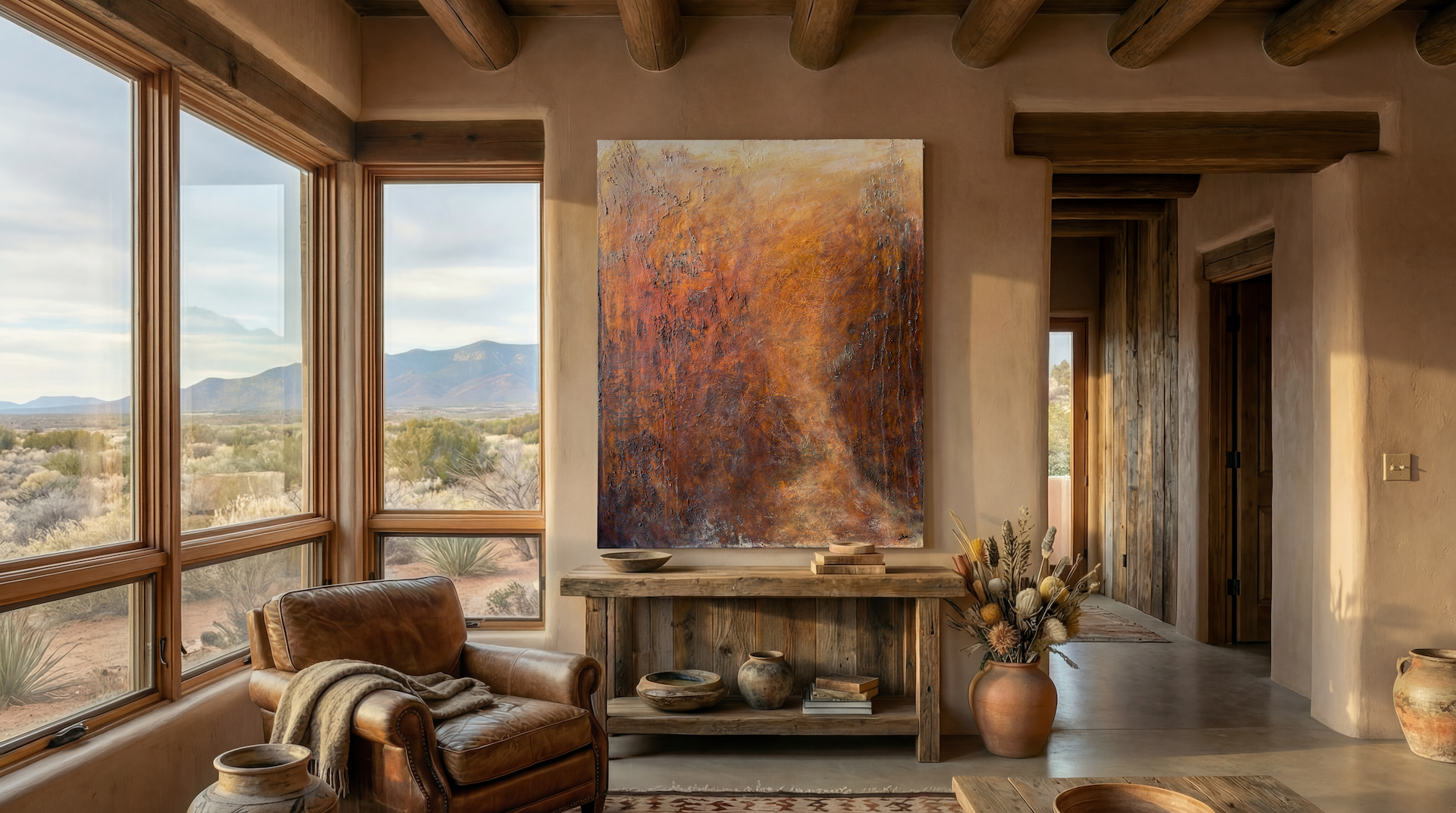 Her paintings emerge from conversation with big nature — the light, the oaks, the unseen forces that move through the land.